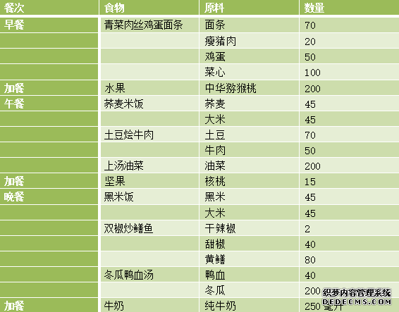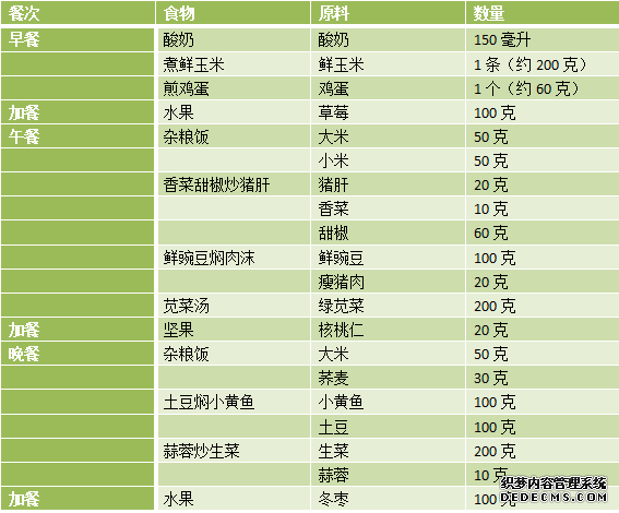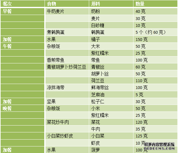 注:全日使用加碘盐:6克,大豆油25克。