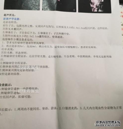 2、造影后的两周禁盆浴和性生活,根据患者情况选择是否需要抗生素预防感染,临床上我们都会让患者打消炎针3-5天;
