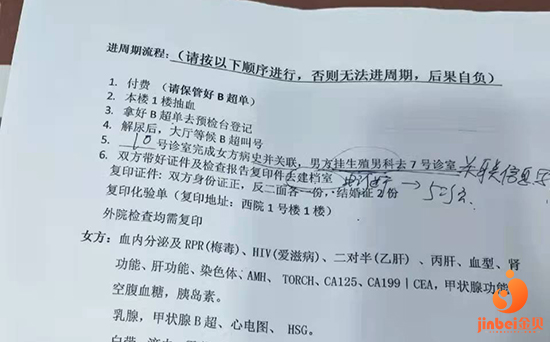 护士会给一张纸上面有接下来要做事情的流程:付费-抽血-b超-男女方写病史(有老公身份证就可以代办理)-建档(老公因为没来所以他的掌纹可以等周六25号来补),上午结束,等报告出来下午听报告及拿药,听说只有这次需要耗一天的时间,下次抽血b超及听报告只需要半天时间,前提是早上尽早完成抽血。