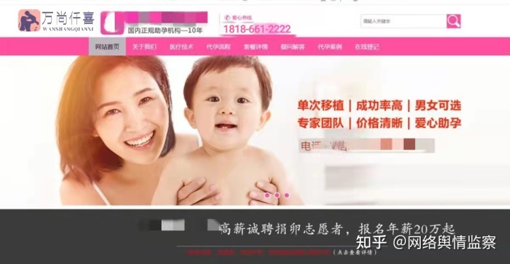在网络上,“代孕”相关信息也很多。输入“代孕”会跳出数千条“包健康”“包生儿子”“安全可靠”等信息。代孕中介机构甚至无须披着伪装外衣,直接在社交平台展示各类代孕服务的价目表,同时展示企业的“成功案例”。