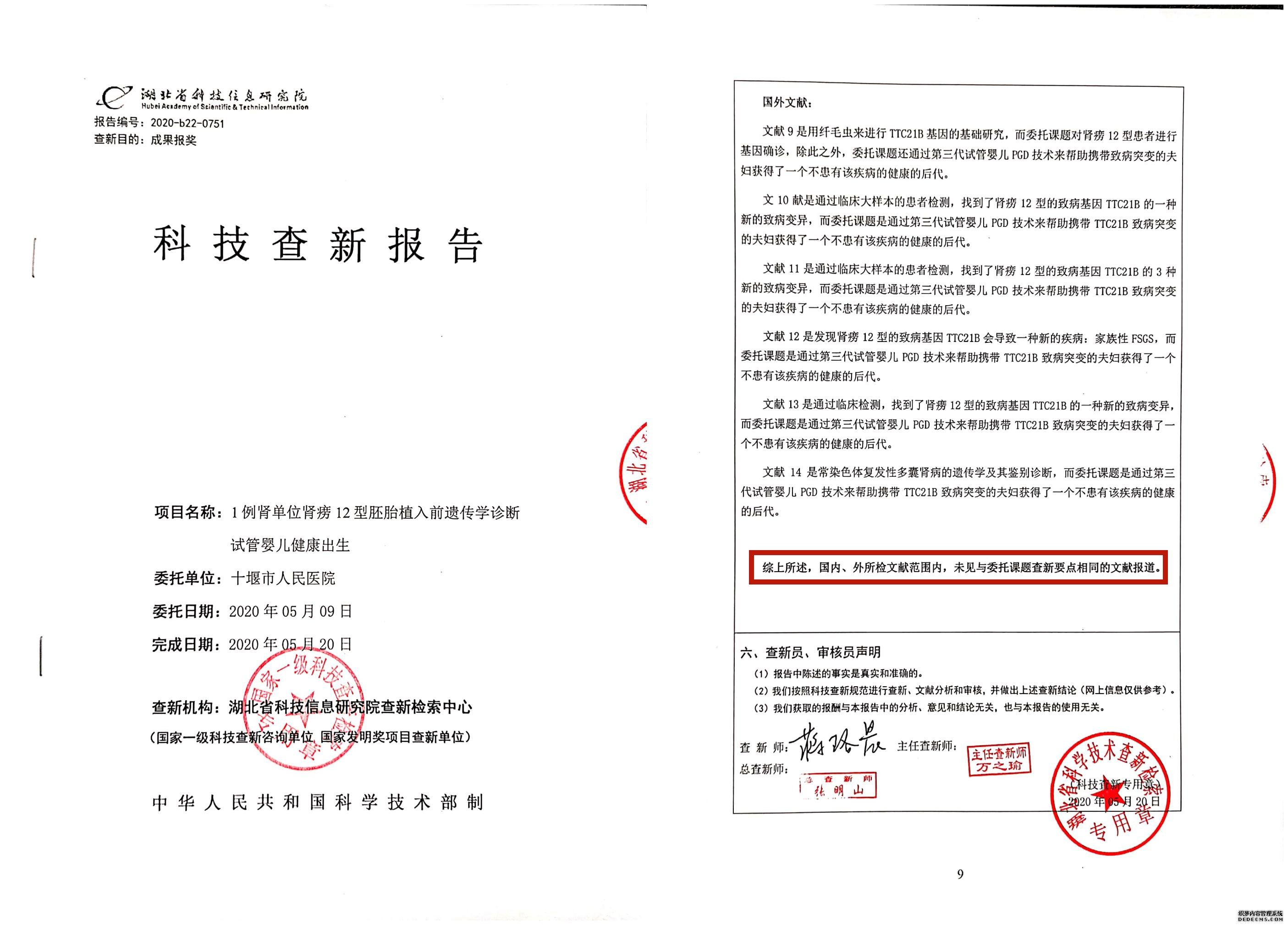 张昌军教授表示,这项科技成果是经过湖北省科技信息研究院查新检索中心(国家发明奖项目查新单位)科技查新检索后,确定属全球首例。这一成果集聚了十堰市人民医院生殖医学中心20多年来积累的多项最前沿的精准医学技术,包括基因检测技术、SNP单倍体分型技术、胚胎植入前遗传学诊断技术等,标志着十堰市人民医院生殖医学中心的试管婴儿技术实力位于全国前列,填补了国际上的空白,能够非常好的为全国乃至全球不孕不育或有遗传问题的夫妇提供技术服务。(记者张贞林特约记者陈勇通讯员陈娟郑桢桢)