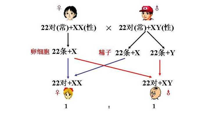 每1个卵子都含有1条X染色体,而精子有一半含有X染色体,另一半含有Y染色。无论男方提供的精子是22+X还是22+Y,女方只提供22+X一种卵子与他接头。Jk0育儿资讯网-育儿常识全方位解读,助您开启好孕之旅