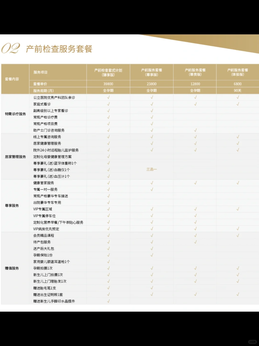 1、我定的是12800的套餐,跟6800的主要区别是多了【助产士门诊咨询服务】和专属停车位,