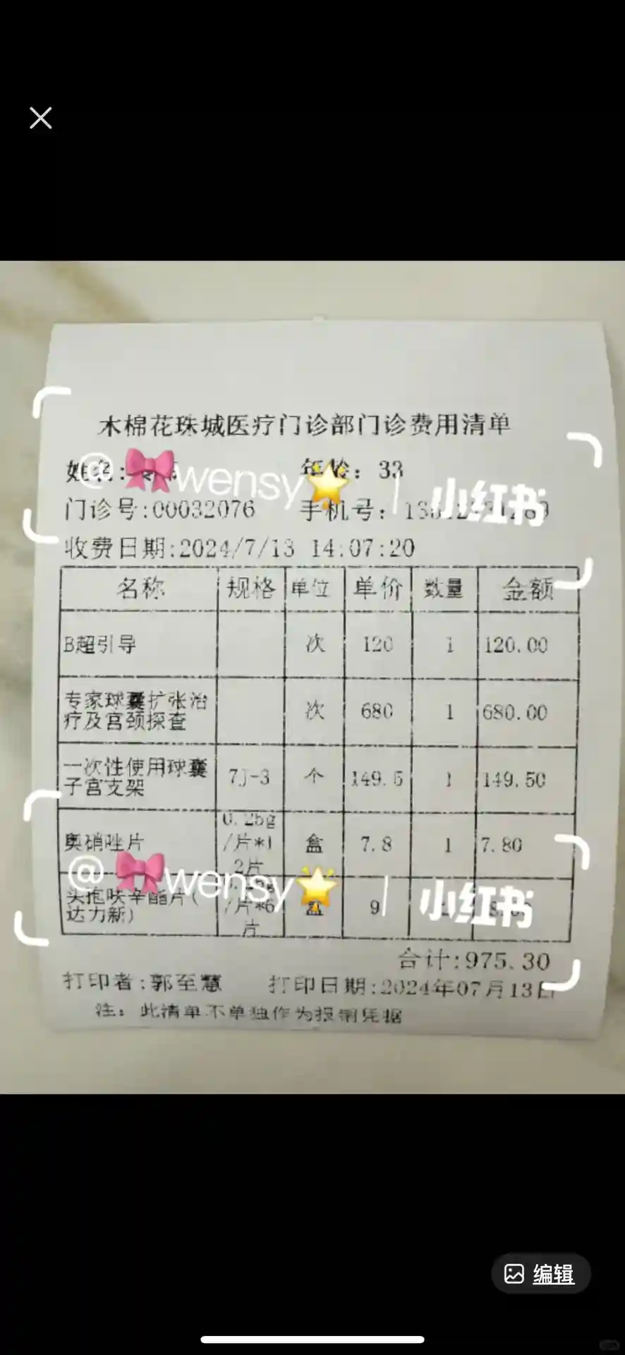 约了14点30分 前台报道完 去针灸室报道 询问了一下办理什么项目 就开单交钱 换完衣服每个人 都很自觉的在门口等叫名字 ⚠️注意扩宫需要憋尿的喔 听到叫名字进入 戴上口罩 换个拖鞋 脱了裤子上了手术床 消毒完等张浩医生了 心情挺紧张的 护士负责照b超 张浩医生就负责做 慢慢就感觉涨涨的痛 有一刻痛到想叫 但还是挺住了 然后不痛了 很快就完成了 听到张医生说月经后复趁 #扩宫