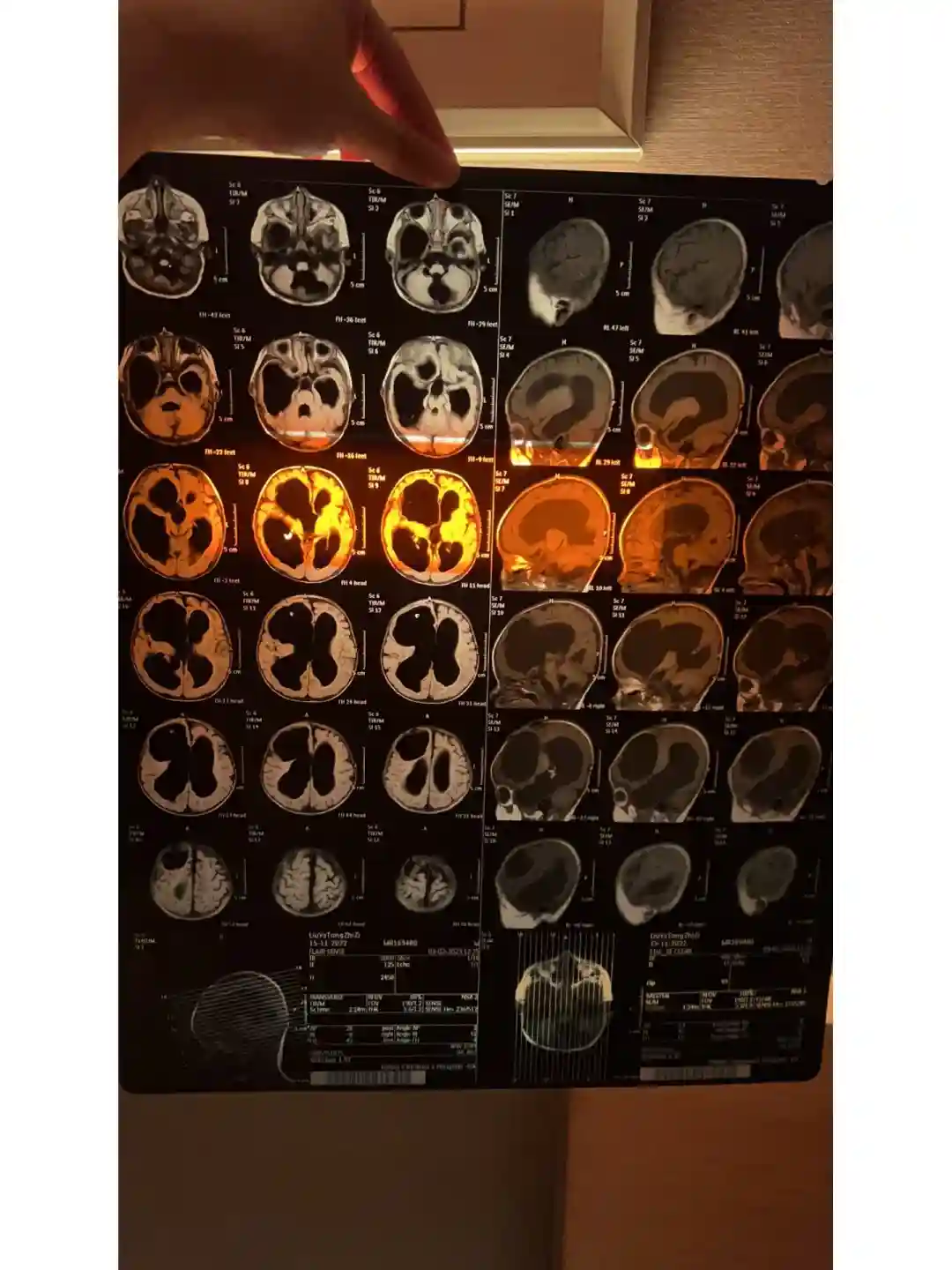 宝宝回家后,真的是天使宝宝!能吃能喝能睡!也不咋哭!状态也一天天的变好!但是我们一刻也不敢马虎!生怕出点什么差错!想想那段时间跟打了鸡血一样,一点也不觉得累!半夜喂奶,换尿布!每天早起固定时间给孩子抽囊。不知不觉半个月过去了,到了复查的日子,我们带孩子做了核磁,给主治医生看了,脑室有点扩张,医生建议加大抽液量,就这样,我们从一天两次,改到一天三次。抽的比以前更多了!我开始怀疑医生,这么抽下去孩子会不会有问题,但是当时自私的想孩子多抽能不能抽好!后来才知道大错特错,不要像我这么无知……导致孩子受罪!就这样,过完年,我们又坚持了半个月!医生还是建议我们做脑脊液电影看看,说看看孩子是否能自己吸收,做完以后发现还是比半个月扩张了,脑损伤的位置也被脑积水撑得特别大了,我自己看片子都觉得孩子不能再等下去了,询问主治医生是否需要查脑脊液,医生建议还是抽囊继续观察,因为自从孩子脑积水,从小红书上学到了不少知识,也询问了类似情况的宝妈,我觉得我不能再等下去了,跟队友家里商量后,我们来了北京,找黄牛挂上了姚主任的号(因为年后复查看病的人特别多,怕挂不上,就找了黄牛!姚主任可以加号,不建议找黄牛!),看诊当天,带着小麦兜看了姚主任!姚主任看了片子之后,说不能再等了,这两天在北京等着入院!再拖下去,孩子的智力跟大运动都会受到影响!虽然当时还是不愿意接受面对孩子带管的事实,但是回到酒店冷静下来,还是得面对现实,在酒店的第二天,接到了医院的电话,通知入院!婆婆跟队友就赶紧回家准备了东西后,我独自带着小麦兜开始了打小怪兽之旅了……#脑积水