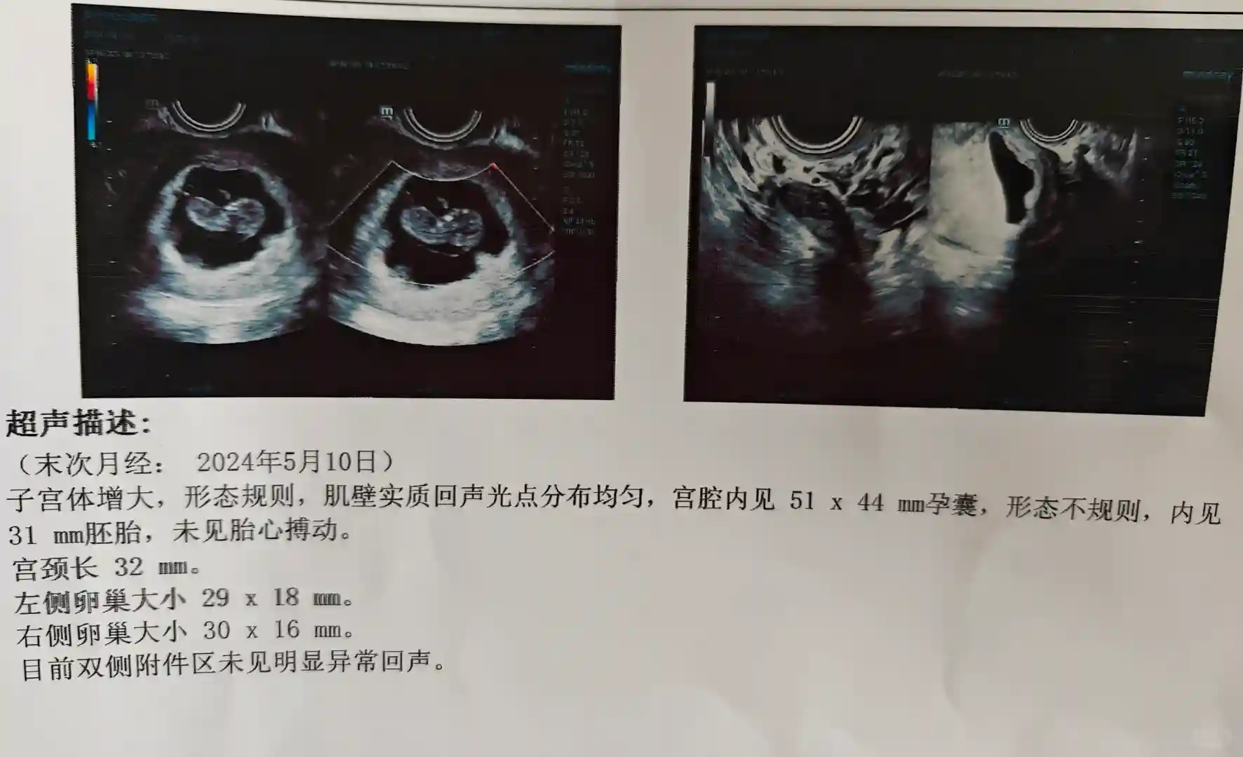 我一直不愿去接受,不愿相信,我的宝宝胎停了,8月9号那天高高兴兴去做Nt,却被告知胎停了去找医生重新开检查单,我整个人都是懵的麻木的,心一下就颠到谷底,重新做了彩超还是一样的没有胎心了,我怕误诊,下午又去了看了中医,医生把脉说看你气色挺好的,宝宝都挺好的,但还是建议去大的权威医院再去确诊一下,比较心安一点,我们又去了离家近的省中医院,医生问我宝宝要吗?我说要的,医生换了两台设备跟我进行了彩超,还是一样的结果,我还是不敢相信我的宝宝已经离开了我,我心想可能是胎心太弱了仪器没有测出来,医生建议我做药流加清宫,我说我考虑一下,我等了5天,期间我还买了胎心监测仪,心想等监测仪到了我自己测,不管在什么位置我都给测出来,后面我出血越来越多了,13号我去了医院,医生准备给我开药流加清宫,因为我的宝宝有3个月了,宝宝有点大了,做无痛人流会做不干净会复发我还是要来做清宫手术,我还是抱着一丝希望,如果能保胎,不管打再多的针我都愿意,我叫医生给我又开了一次彩超,那天人特别多,我们排了好久,我坐在医院长椅上,我感觉小腹一阵一阵的痛,先是流血,后面羊水破了,到我了,我去做彩超时流了好多血,医生给我做彩超时说现在没有孕囊了,我把检查单拿给门诊医生看,医生说我子宫内膜增厚,要赶紧做手术不然到晚上点会大出血,我好害怕,做手术前是不能吃任何食物包括水也不能喝,因为知道可能会做抽血检查昨晚22:00我就禁水禁食了,正好符合做手术的要求,医生说麻醉师有两台手术做完才能过来,那一整天我都没有觉得饿,更多的是害怕,心疼,在要做手术前半小时,我的宝宝自主流产了,我的宝宝或许也是心疼妈妈,所以我只做了15分钟的手术,医生说叫我别难过,优胜略汰嘛,我还是好难过,意难平,我的大宝是个健康的宝宝,二宝却胎停了……#胎停